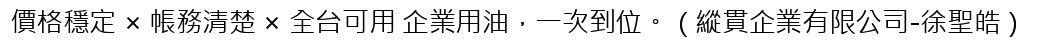 價格穩定 × 帳務清楚 × 全台可用 企業用油,一次到位。(縱貫企業有限公司-徐聖皓)