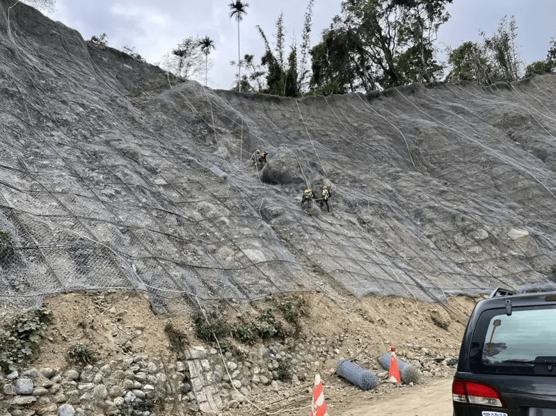 花蓮縣政府農業處表示,復建工程主要畫分為8大工區,均位於道路4公里至10.25公里,工區內大小邊坡崩塌需整治共有13處。先將坡面多餘土石刷除整理,再設置自由格梁、噴凝土溝及打設土岩釘穩固邊坡,避免日後雨水沖刷造成土石滑落;施作帽梁、微型樁、擋土牆、防落石網及石籠等水保設施,改善邊坡狀況,現已全力趕工。